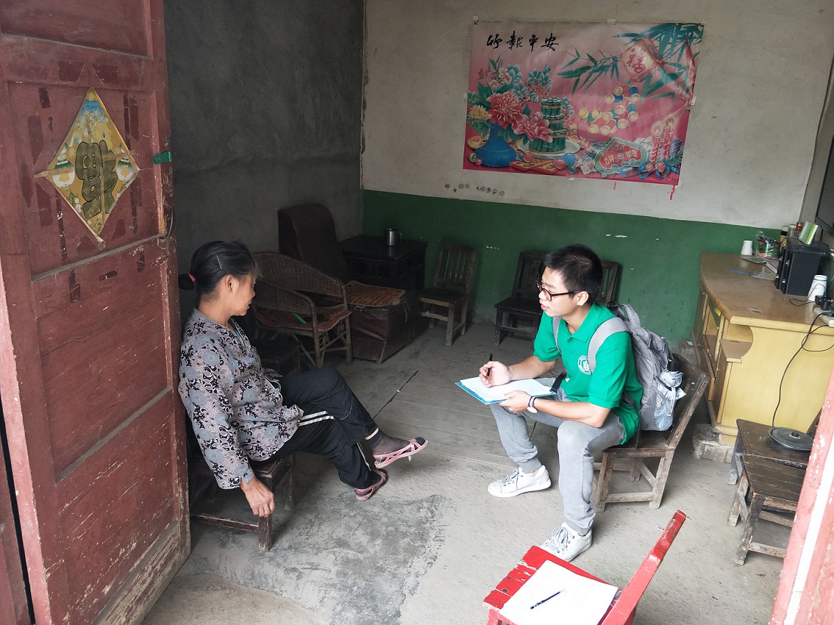 队员们在位于民主镇周边1-2公里的范围内的3个分散的村庄进行调查。队伍发现,由于民主镇地形的原因,村民的居住点较为分散,山脚、山腰、山谷均有居民居住。在周围村庄中,银米村的交通条件是最不方便的。银米村位于一个小山谷中,周围是干净的河流、云雾缭绕的植被、茂密的山坡、山坡上的耕地和盘山公路,优美的景色为调研队增加了不少幸福感。从银米村赶往镇上需要先经过一道摇摇晃晃的钢缆桥,再从小路往上爬坡,方可抵达二级公路,最后沿着二级公路到达镇上。值得庆幸的是,钢缆桥非常宽敞,上坡路虽然陡峭,但用了混凝土硬化道路。村民们介绍,这两个工程都是国家拨款建设的,极大地便利了村民们的出行。这次采访涉及贫困户和已脱贫致富的农户,受采访者多为小学文化程度的老人。老人们普遍对普通话掌握不太熟练,但几乎每一位老人都很热情,积极配合每位队员的工作。虽然交流受到语言问题的阻碍,但老人们仍一一耐心详细地回答。当地人家的住房面积都比较大,队伍没有发现任何的危房。