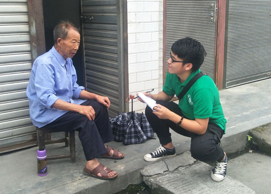 在对周边村子基本情况进行了解之后,小分队一路向西,向五一村和银米村进发。五一村有308户人家,银米村有379户,都不算很大,但是村里人家较为分散,通常以2到3户聚集,这无疑为调研增加了很大难度,但是队员们不怕苦,不怕累,无论是田间地头,还是深山断崖,只要有农户,就有队员们的身影,爬陡山,度危桥,队员们迈着坚定的步伐,勇敢前行,走访每一户人家。队员蓝一川不仅与农户进行了友好的交谈,还热情的帮助农户修理电视等简单电子产品,可谓是“扶贫到家”。通过和农户交流,队员们了解到,大多数农户子女在外,老人无人赡养,家中贫困,却并非贫困户,提到扶贫工作和政策时,人们对其深信不疑。