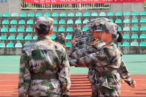 “习军人风采,强自身素质,铸经管辉煌。”气温不断攀升,太阳也变得灼热,田径场上,经管男儿仍旧奋力踢出威武步伐,喊出强硬口号。酸痛的肌肉、干裂的嘴唇,即便早已痛苦难耐,也要选择毅然坚持。训练场上的经管新兵不惧汗水淋漓,集中精神于踢正步时的统一高度、整齐排面、统一动作,脚踏实地地练习,卯足力气为最终的汇演一展经管蓬勃风采。青春风采在训练场上持续激荡,身着军装的新兵们也在这段征途上浩荡前行,他们气宇轩昂,他们神采奕奕,他们用求真务实走进集体主义精神,带着梦想启航。
