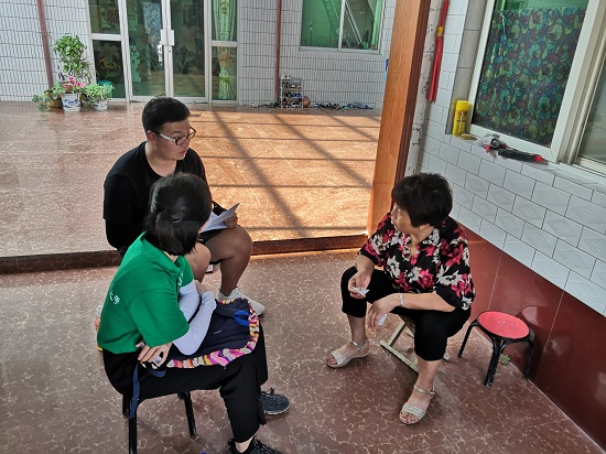 与村民交谈