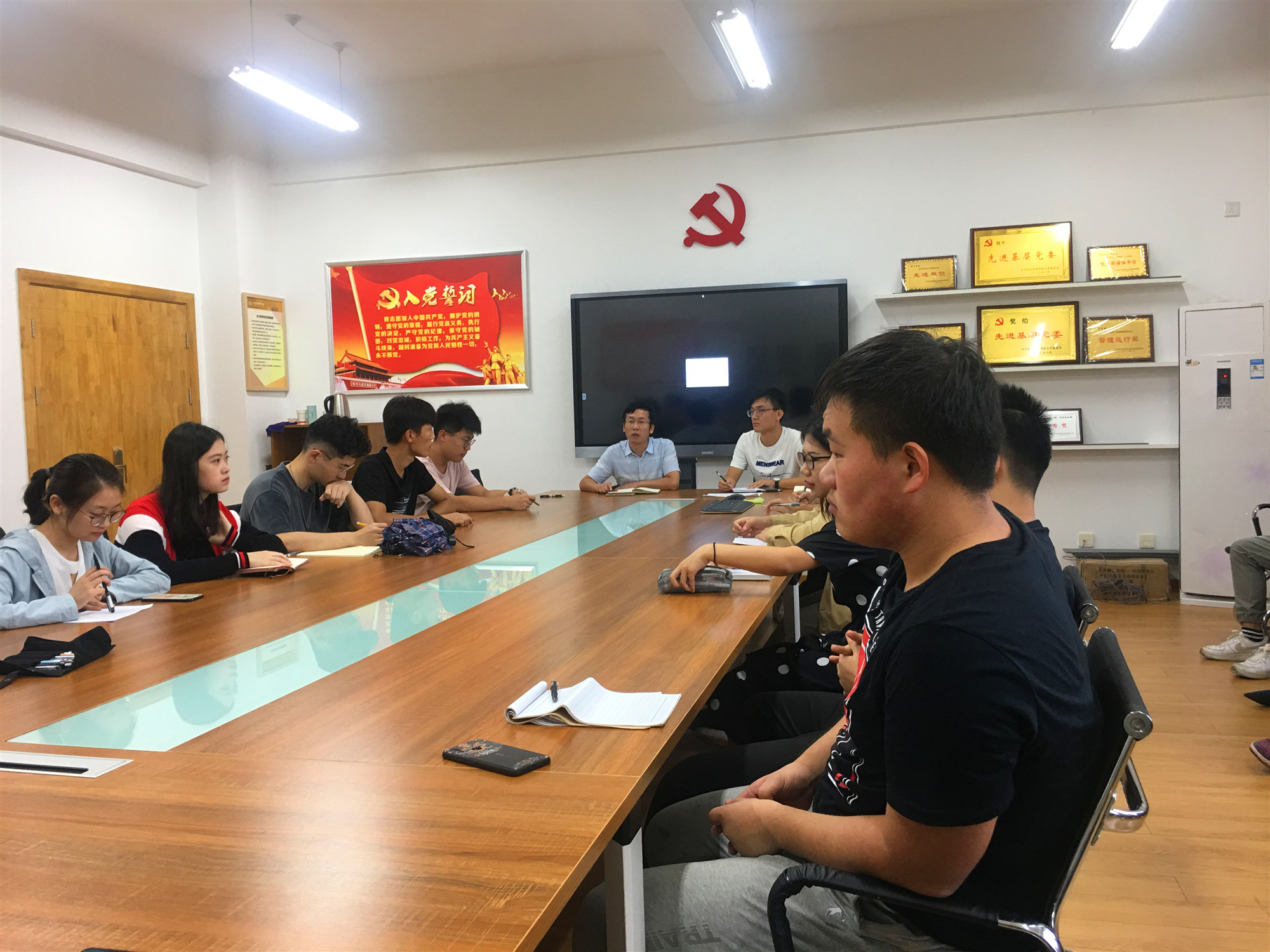 会上,张军驰老师首先强调了假期安全问题以及校外住宿问题,要求班长支书要配合好公司的工作,做好对班内同学的情况的摸查,有问题及时上报,确保所有同学的在校安全。其次,他向班长支书通报了上一年的考研以及就业情况,告诫同学要找准定位,做好就业与考研的选择题,不辜负大学四年的学习生涯。