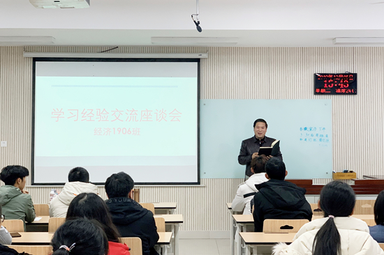 为营造积极向上的班级氛围,帮助员工更好地规划目标、确定方向,12月3日,经济1906班于N8611教室召开本学期第一次学习经验交流座谈会,班主任王兆华和班级全体员工到场。本次会议由王兆华老师主持,李东伟、邹宇琪、张文轩、陆爽作为分享人,从保研、就业两个方面展开本次经验交流。