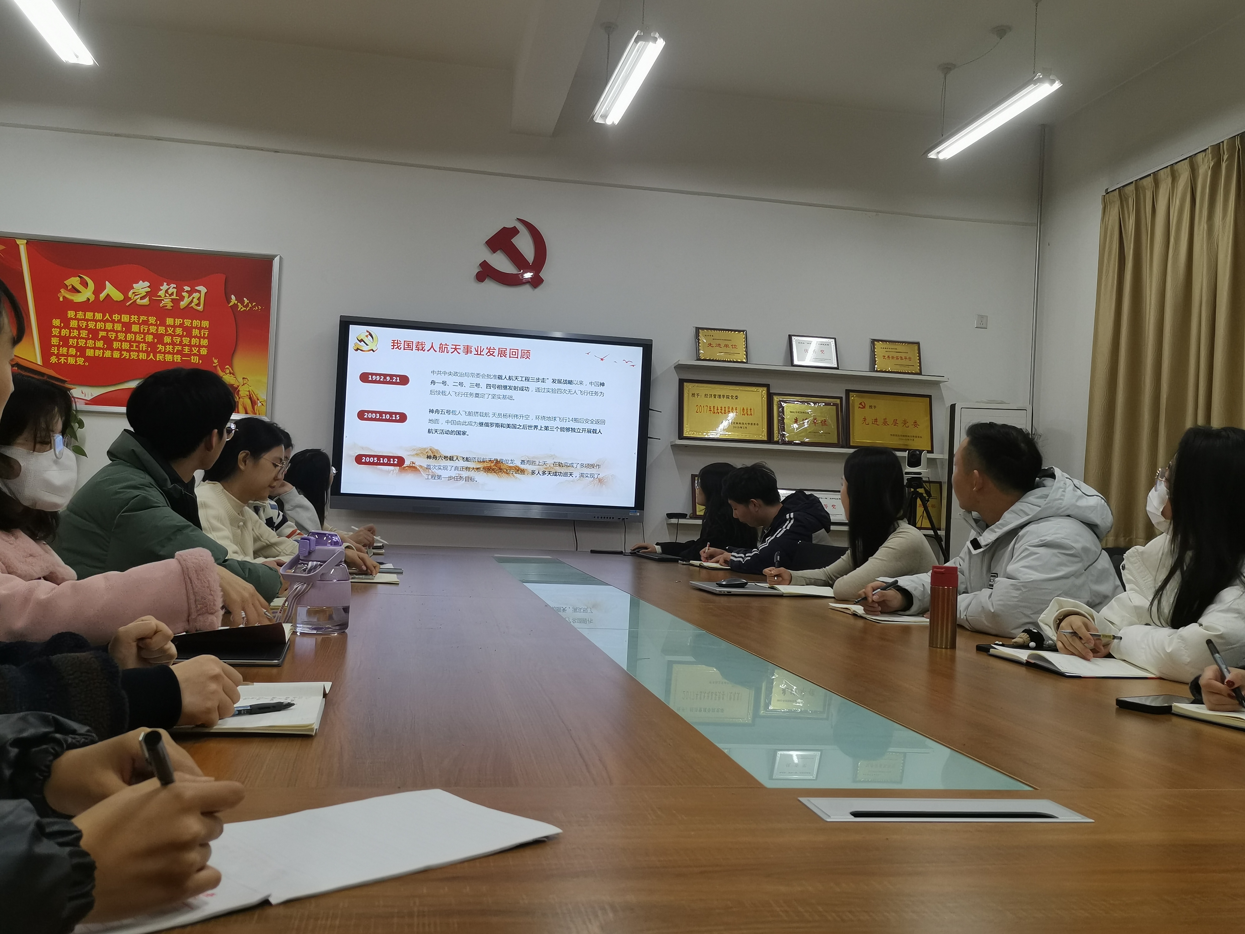 会上,办公室、新宣部领学人以我国载人航天事业相关内容为主题,深刻学习了载人航天精神的内涵及意义,进一步认识到新时代弘扬载人航天精神的必要性。就业实践部、权益心理部领学人围绕习近平总书记系列讲话精神展开学习,深入领会了系列讲话所蕴含的深刻内涵和哲学智慧,认识到了马克思主义中国化时代化的重要性。学术部领学人深入学习了“一带一路”国际合作相关知识,深刻了解了“一带一路”战略对于国家发展的重要地位。文体部、职工事务部领学人以中国共产党人精神谱系的学习为重点,让大家对中国共产党的光辉历史和伟大事业有了更加清晰的认识。