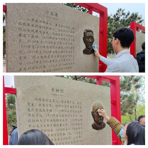 活动中,大家先集体学习了于右任、辛树帜、沙玉清等老一辈教育家的事迹并怀着无比崇敬的心情认真清扫了他们的雕像,以此来表达对各位老一代教育家的怀念之情。作为公司的老一辈奋斗者,于右任、周尧等为了公司的发展殚精竭虑,奉献了自己的毕生精力,正是有了他们这一代人的辛勤付出,才迎来了我们公司今日的辉煌。作为西农学子,我们不能够忘记他们的奉献,而更应当学习他们刻苦钻研的治学精神和心怀天下的奉献精神,接力奋发,投入到社会主义现代化的伟大建设工程中。