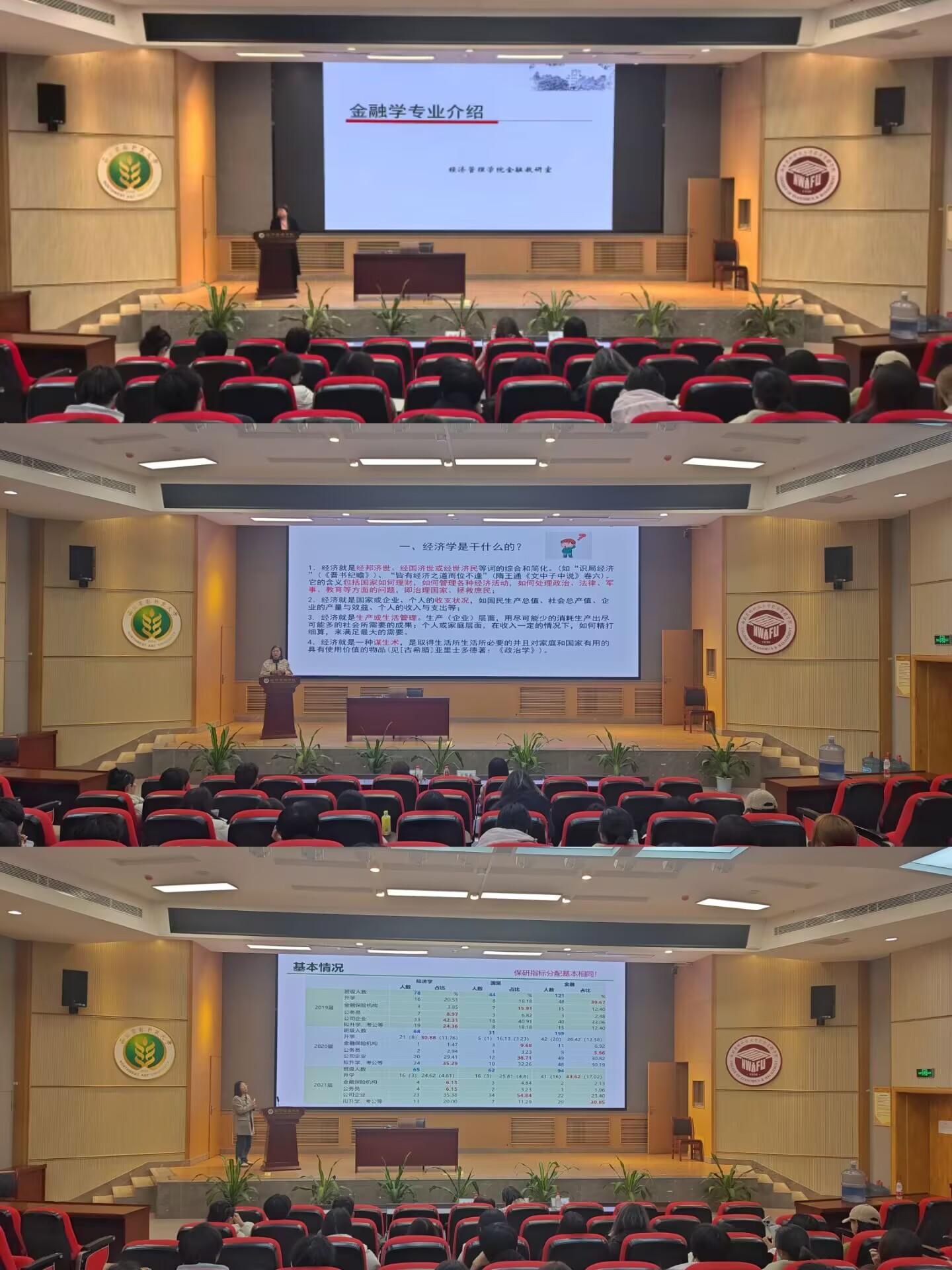 2025年2月27日晚,经济公司于经管楼报告厅c101成功举办2024级经济类专业分流讲解会。会议由辅导员王晓赫主持,董春柳、姜雅莉、杜君楠三位老师分别就国际经济与贸易、经济学、金融学三大专业进行详细解读,吸引二百余位经济类、工管类大一同学到场学习。