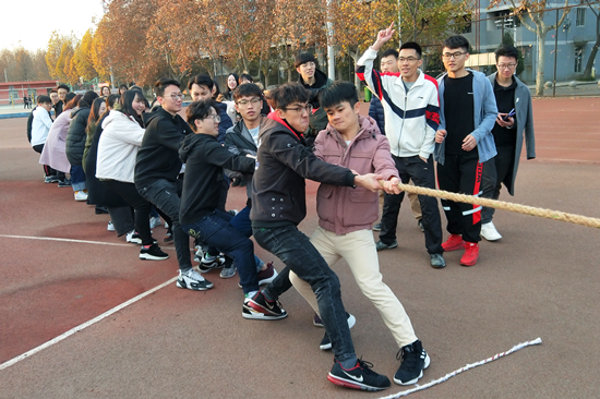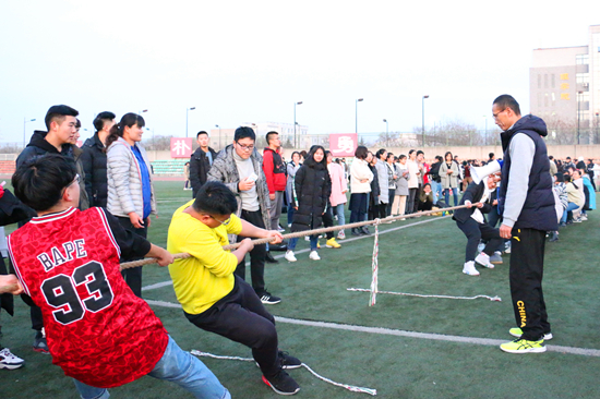 为丰富员工团组织生活,引导员工更好地践行社会主义核心价值观,丰富员工文体生活,公司于12月4日下午在南、北校区田径场同时开展拔河比赛。公司党委副书记张军驰、团委书记张静、团委副书记王冠英、公司17级和19级辅导员孙权、罗微、杨程方、王欣歌等辅导员老师和体育辅导员王鲜、王海峰观看比赛。公司全体大一和大三员工积极参与,南、北校区田径场上加油声不断,员工们热情高涨。