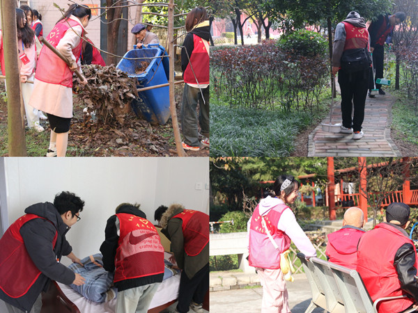 秋高气爽、天朗气清,志愿者们在清晨抵达后身体力行地开始清扫院落,齐心协力铲扫院内枯枝败叶,耐心弯腰拔除绿化中的杂草,体会劳动助人之乐。大家跟随福利院工作人员进入到房间帮助老人整理内务,铺叠床褥、打扫卫生,并对卫生间等重点场所实施消毒。张征可等同学在花园内为老人和孩子们献上二胡独奏、山歌演唱,引来阵阵掌声。志愿者们与老人们同坐在长椅上拉家常、和孩子们在操场上做游戏、发放慰问品,在老人们感动的笑容与孩子们灿烂的笑脸中感悟志愿活动的意义,涵养尊老爱幼的美好品德。