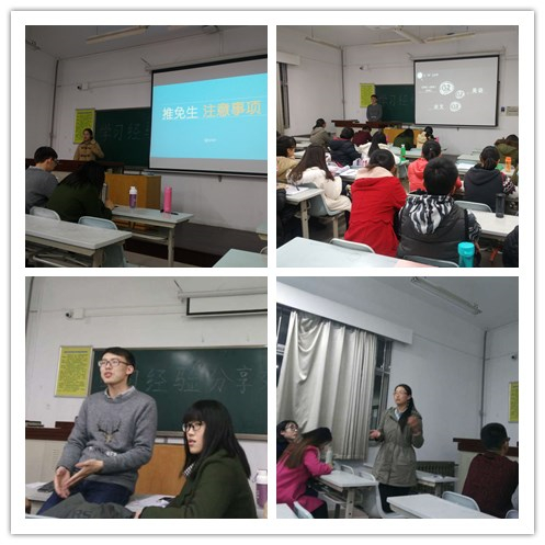 12月6日晚七点,在北校区8106教室,农经党支部召开了以“保研与学习经验分享”为主题的经验交流会。交流会由农经党支部2013级几位保研的学长学姐为15级农经专业同学传授学习经验。