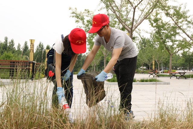 活动中,大家手持自制的小红旗,每一面小红旗上面都写着有关生态文明的宣传标语,带着垃圾袋等清洁工具,沿着渭河湿地公园的河道、绿化带专心清理被遗弃的废纸、食品袋、塑料瓶等垃圾,向身边的游客宣传绿色新理念。经过一个多小时的清理,河道、沿路绿化带的垃圾被彻底清理干净。