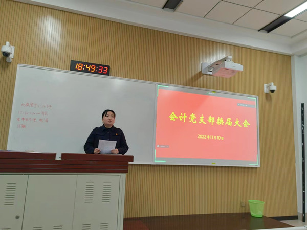 11月10日下午,会计党支部在南校区一号教学楼S1102室召开支部换届选举大会,会议由张静老师主持,支部全体党员成员参加。