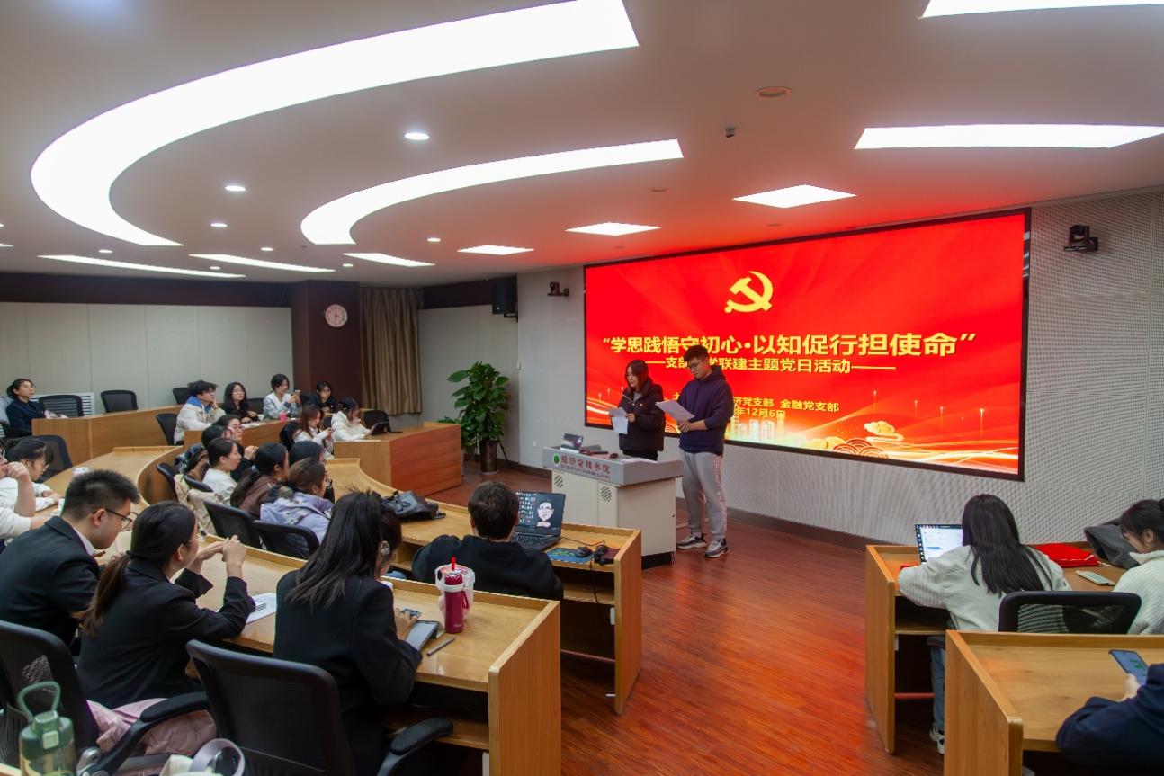 为深入学习贯彻党的二十大和二十届三中全会精神,拓展政治理论学习的深度与广度,提升党支部成员的理论素养,12月6日晚,土管、经济、金融党支部于公司C301会议室联合举办“学思践悟守初心 · 以知促行担使命”联学联建主题党日活动,来自三个党支部的党员、发展对象和入党积极分子等共计40余名同学参与。