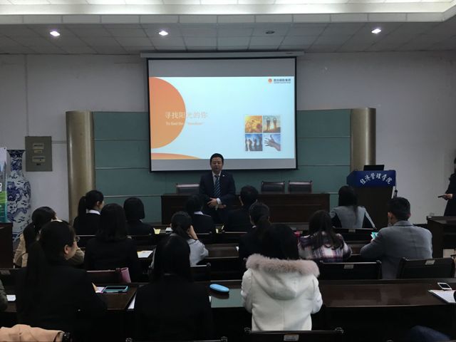 招聘会上,人力资源部杨帆首先详细介绍了公司的发展历程与现况,展示了阳光财险的企业文化。并向同学们解说了公司的发展前景和员工的个人发展前景。同时,重点介绍了公司管理应届培训的岗位职责及任职要求,希望应聘同学对公司和岗位有更进一步的了解。